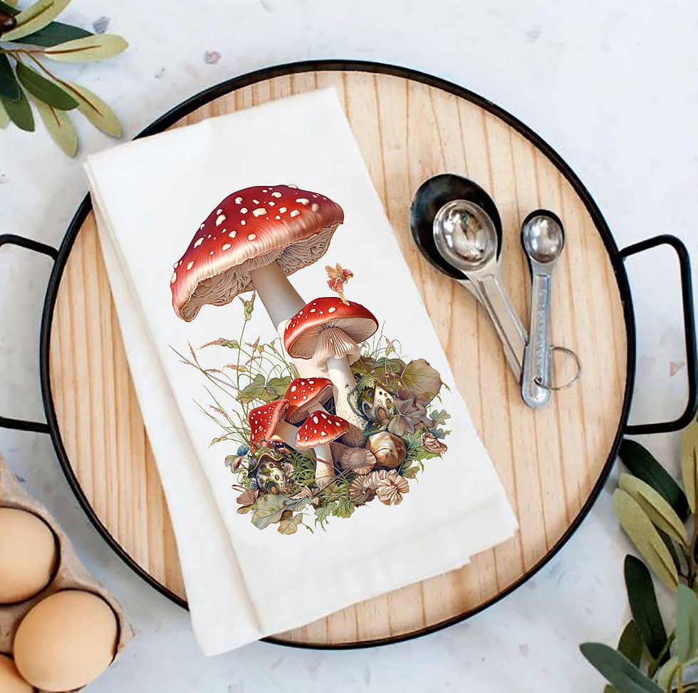 Red & White Mushrooms Faires Flour Sack Tea Towel